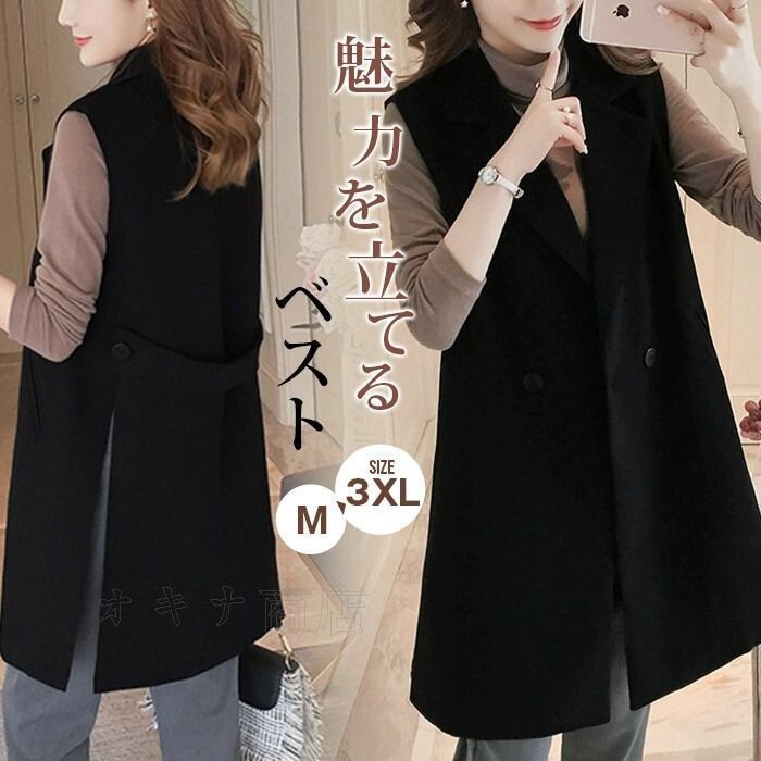 - ベスト ジレ レディース 前開き ジレベスト トップス おしゃれ 大きいサイズ ロングジレ ロングベスト ロング丈 ノースリーブ 通