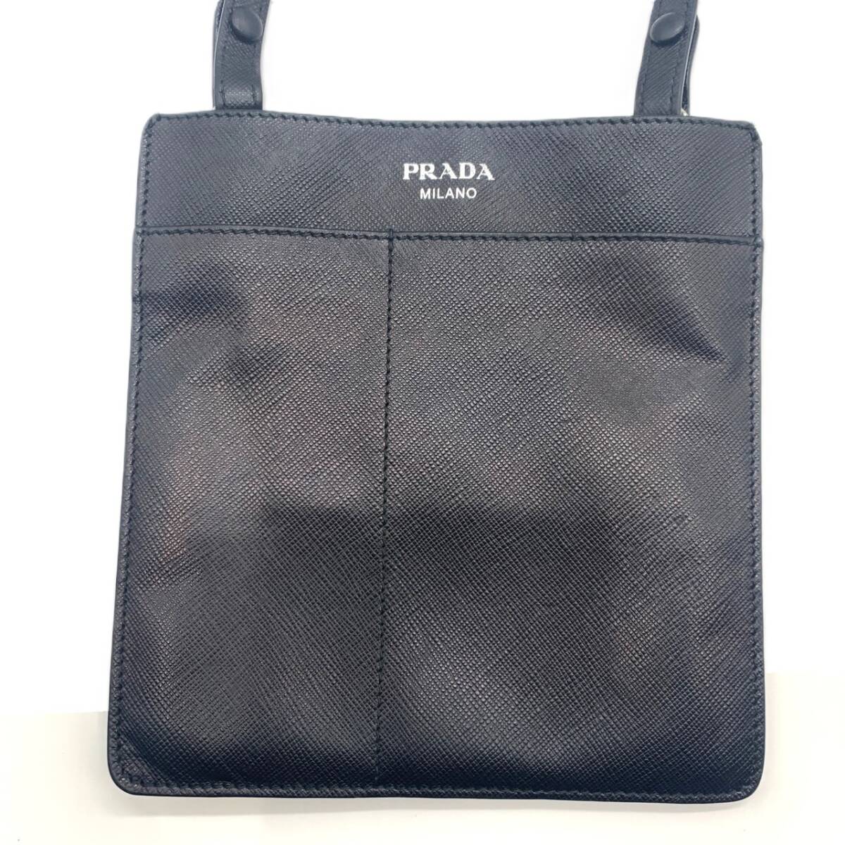 - プラダ サフィアーノレザー ショルダーバッグ ポシェット ユニセックス ブラック PRADA ABランク 中古