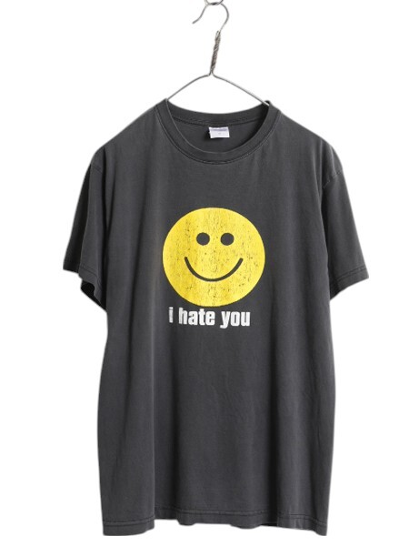> 00s スマイル イラスト メッセージ プリント Tシャツ メンズ レディース M 古着 オールド キャラクター グラフィック アート ニコちゃん 黒