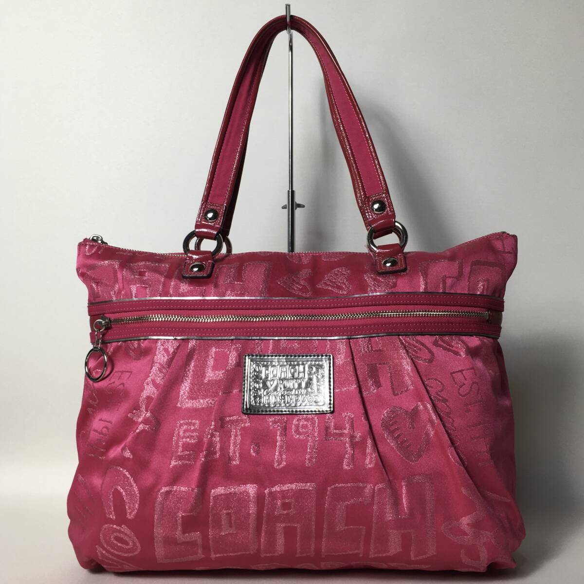 - 75B141|美品|コーチ トートバッグ キャンバス レザー ピンク