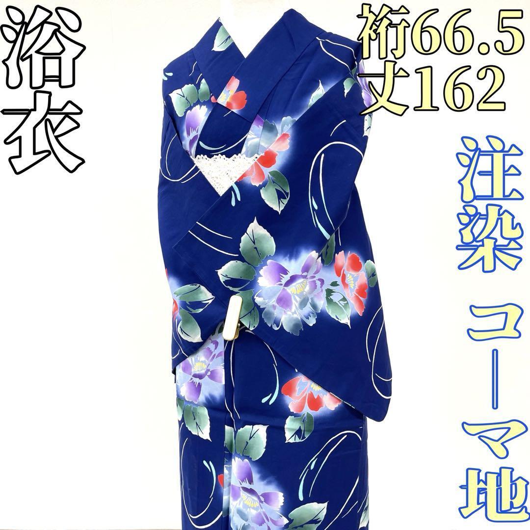- 【着物と帯 時流】Y25726◆注染浴衣◆手縫い コーマ地 綿100% 美品