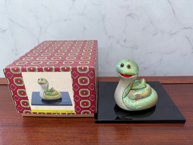 - 干支置物 古布細工 生地 ハンドメイド 蛇 へび 巳(み)