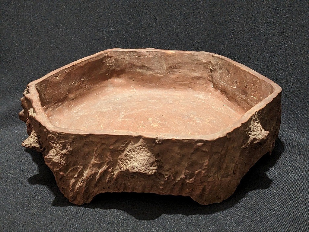- S515 中国宜興 大清年製銘 古木 朱泥木根彫 六角鉢 植木鉢 盆栽鉢 山野草鉢/100