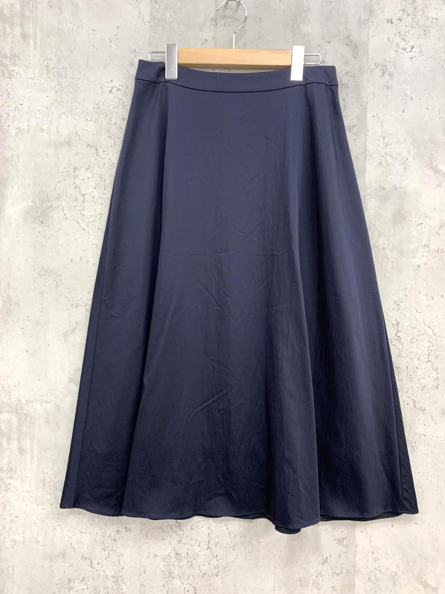 - ゆうパケットOK 美品 INDIVI インディヴィ キュプラ アシンメトリーヘム フレア スカート size40/濃紺 ■■ ☆ fcd1 レディース