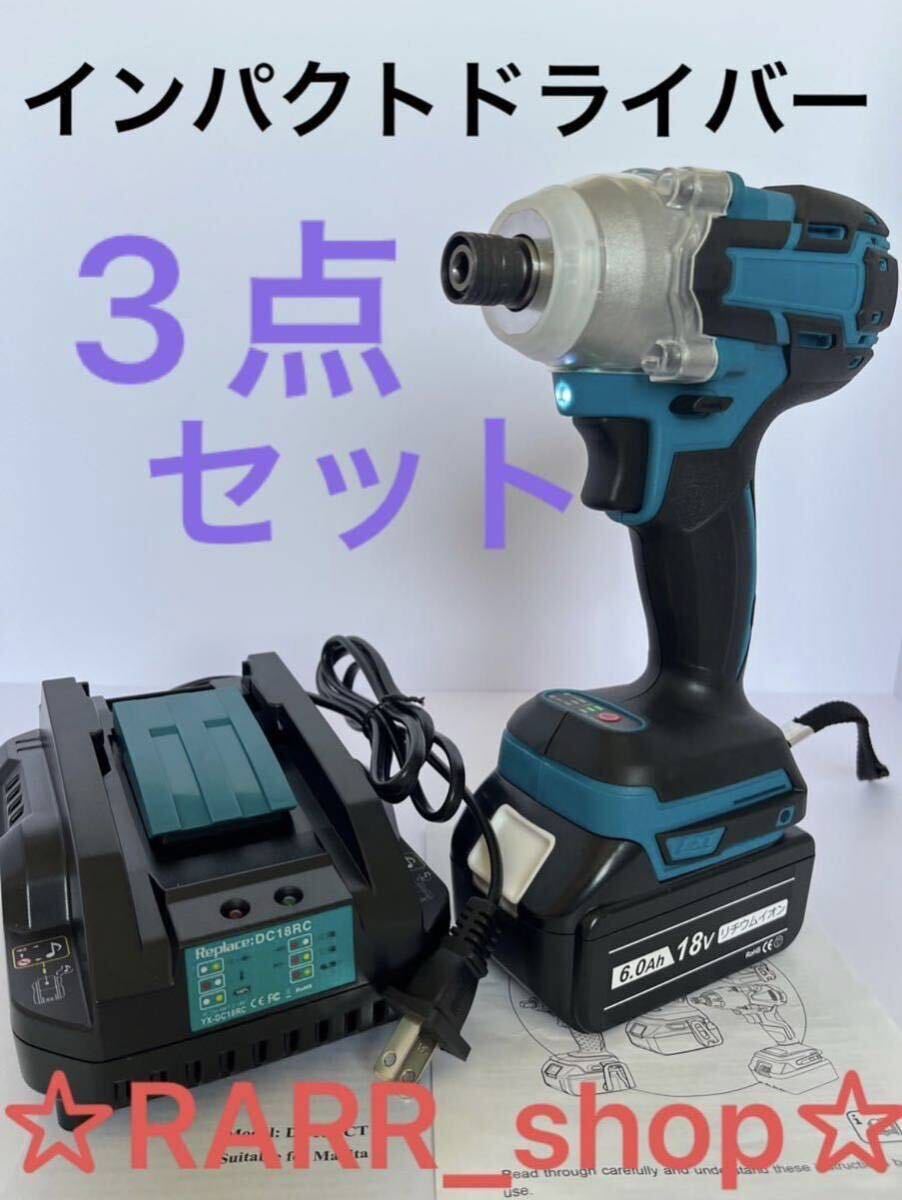- インパクトドライバー 3点セット マキタ互換 急速充電器 バッテリーBL1860b makita 充電式 工具 DIY 電動工具 充電器 キャンプ インパクト