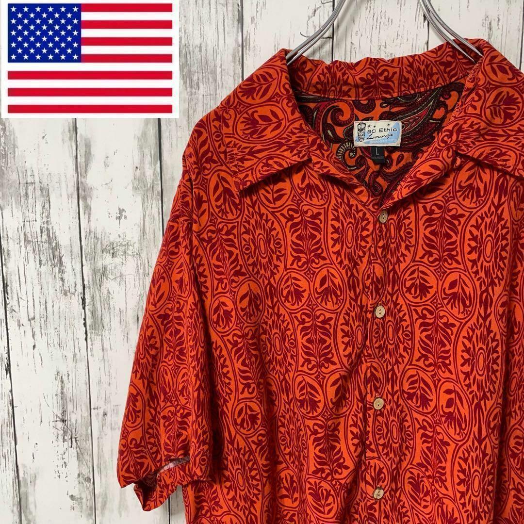 > N-1743 BC Ethic アメリカ古着 USA製 アロハシャツ 総柄シャツ 半袖シャツ ペイズリー柄 L