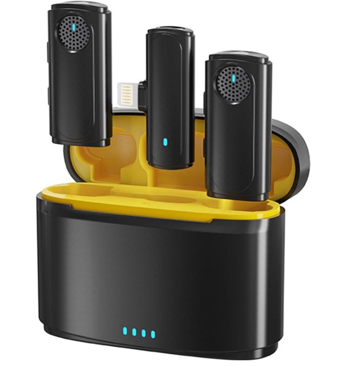 - ワイヤレスマイク ピンマイク 充電ケース付き スマートフォン用 外付けマイク インスタント接続 小型