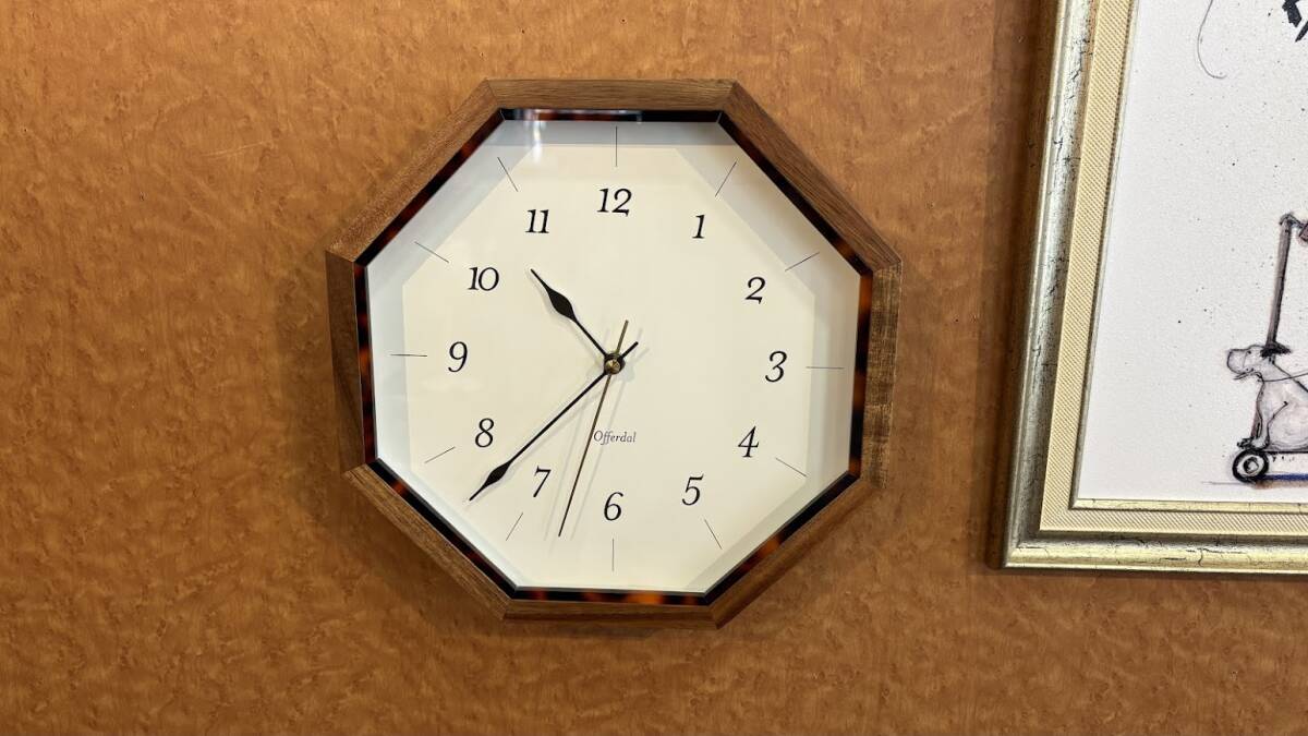 > コチコチ音なし★掛け時計 ウォールクロック シンプル 八角形 風水 べっ甲調 木フレーム Ahteeアハテー CL-4295★