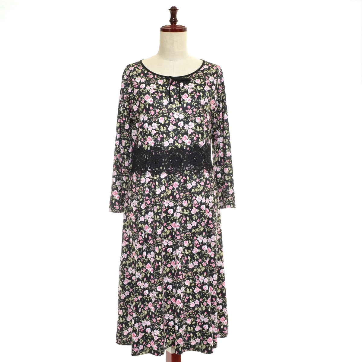 > □541153 Super Beauty スーパービューティ ○ロングワンピース レース装飾花柄OP サイズ40 レディース ブラック 他