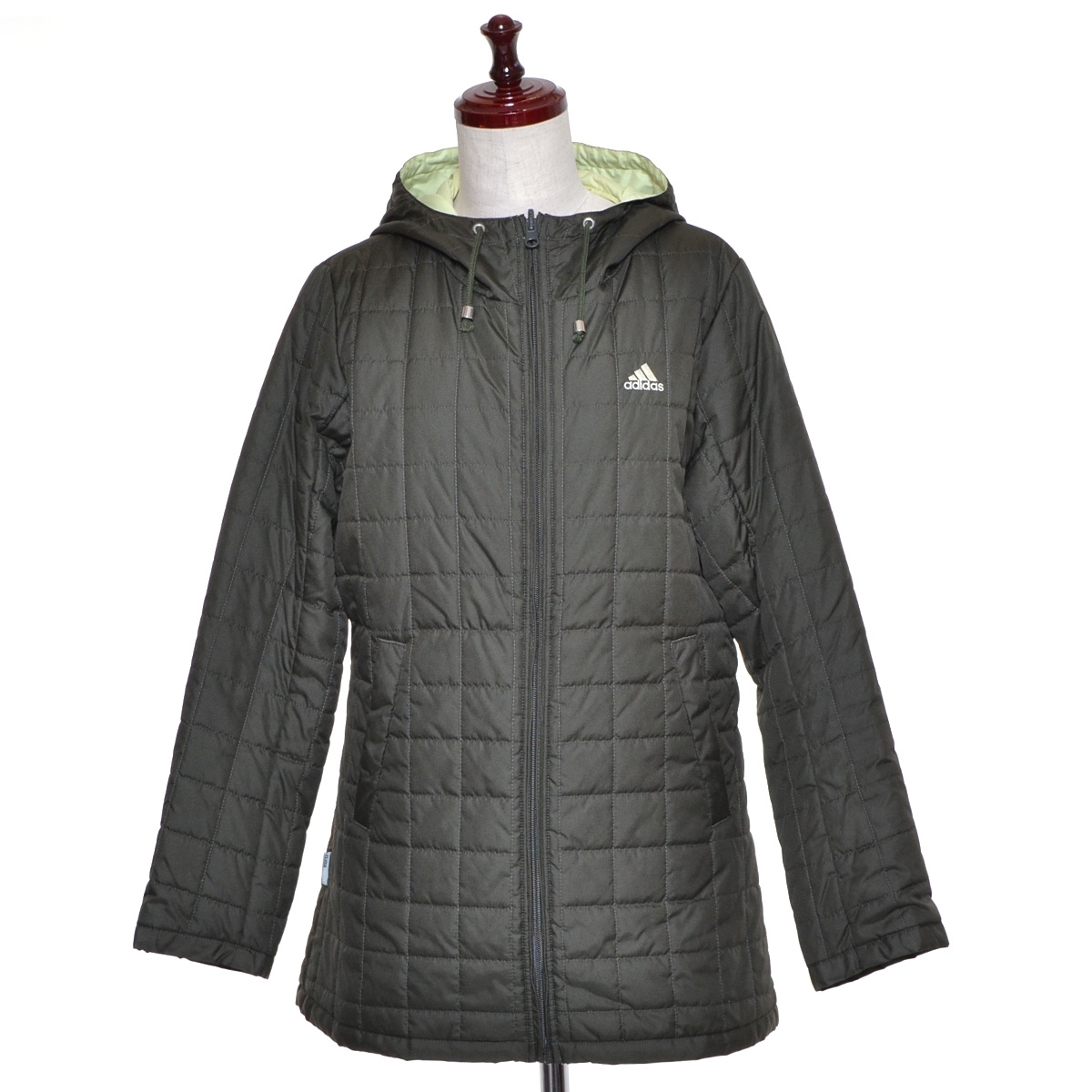 > □495558 adidas アディダス ○ジャケット パーカー リバーシブルキルティングジャケット サイズM レディース カーキ グリーン