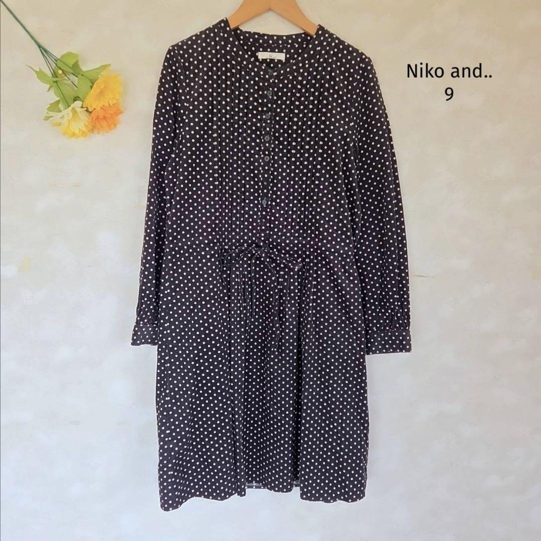 - ニコアンド ピンタック ワンピース【9】コーデュロイ 水玉 膝下丈