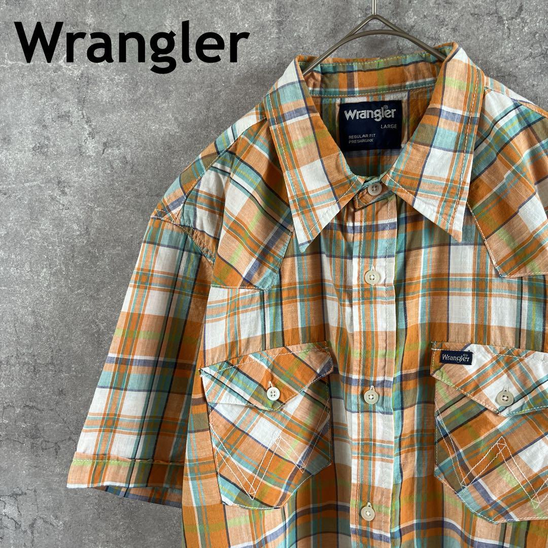 - Wranglerウエスタンチェック柄 半袖シャツ ボタンダウン Lメンズオレンジ