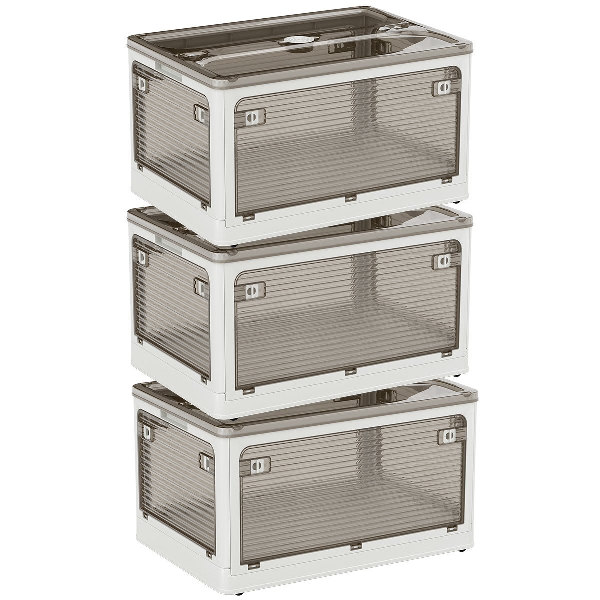 - 【送料無料】収納ボックス 98L 3個セット 大容量 折りたたみ 収納ケース 蓋付き キャスター付き 透明 積み重ね 5面開き 衣類 布団