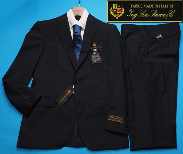 - 新品12.9万円 大手百貨店扱い 春夏『ロロピアーナ ZELANDER 伊製生地』ウール100% 艶感 ソリッド無地 スーツA7紺(B) 1506471