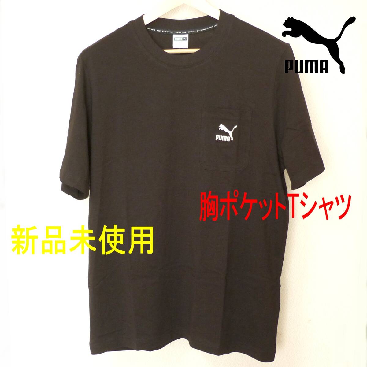 - ◎新品未使用◆送料無料◆(メンズM)プーマー PUMA 黒 胸ポケット付きTシャツ/刺繍ロゴ