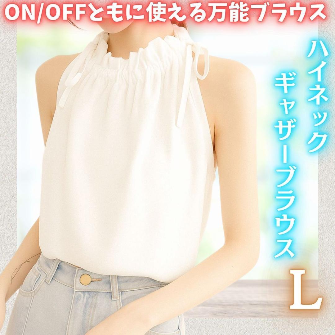 - ノースリーブ ハイネック ブラウス L シフォン 体型カバー 上品 ホワイト