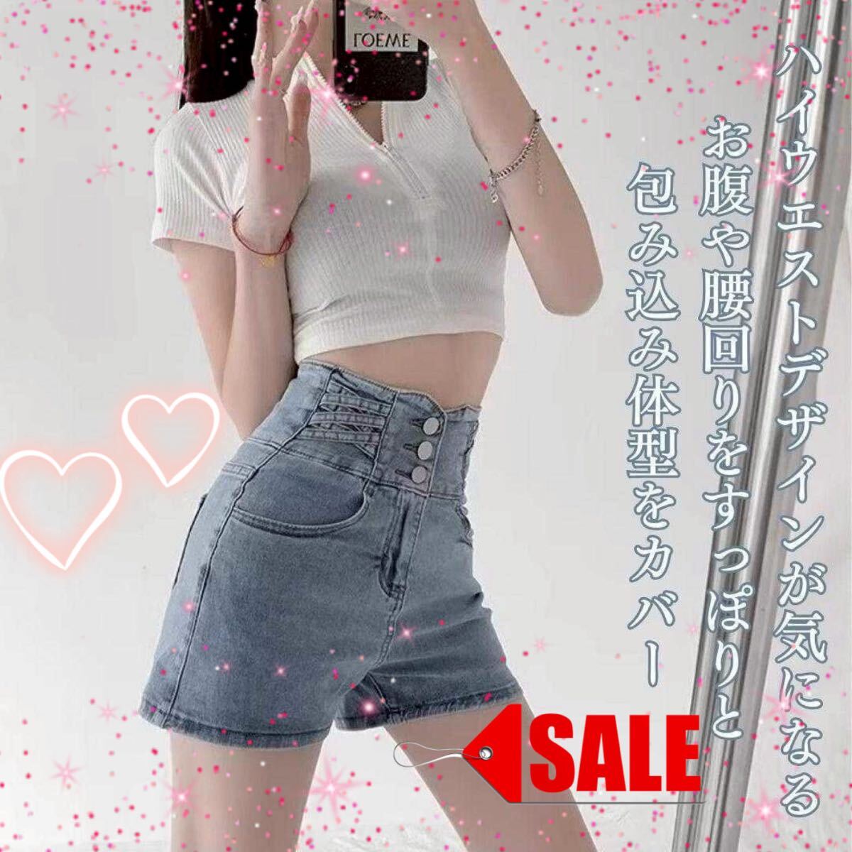 - ハイウエスト クロス デニム ショートパンツXL ワイド ホットパンツ ブルー コメントでお値引き