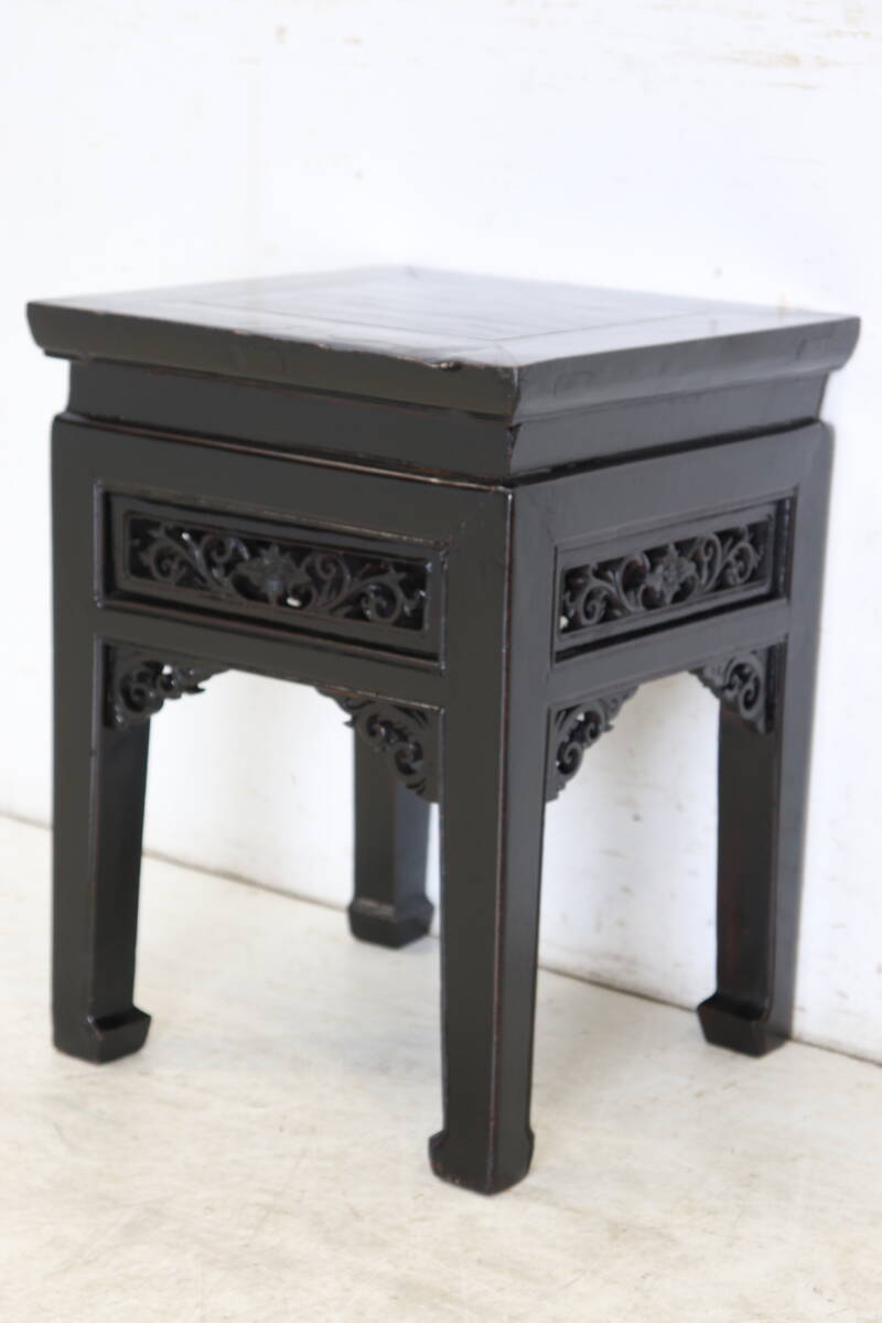 - 【中国骨董】透かし彫り黒漆中卓/香炉台/飾り台 骨董家具 ディスプレイ台 サイドテーブル 花台 プランタースタンド(高さ53.3cm)