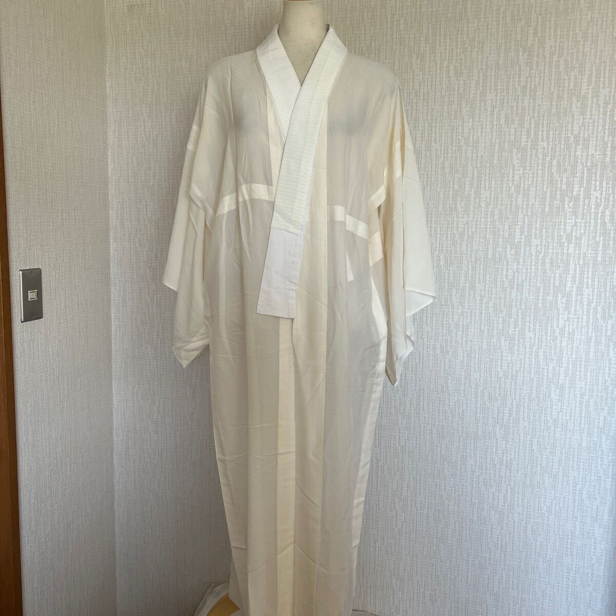 - 長襦袢●65じゅばん●手縫い仕立て●身丈127cm●肌着*和装*着物*和服*レトロ*アンティーク●白 無地 単衣 半衿付 絽 夏用 留袖用 喪服