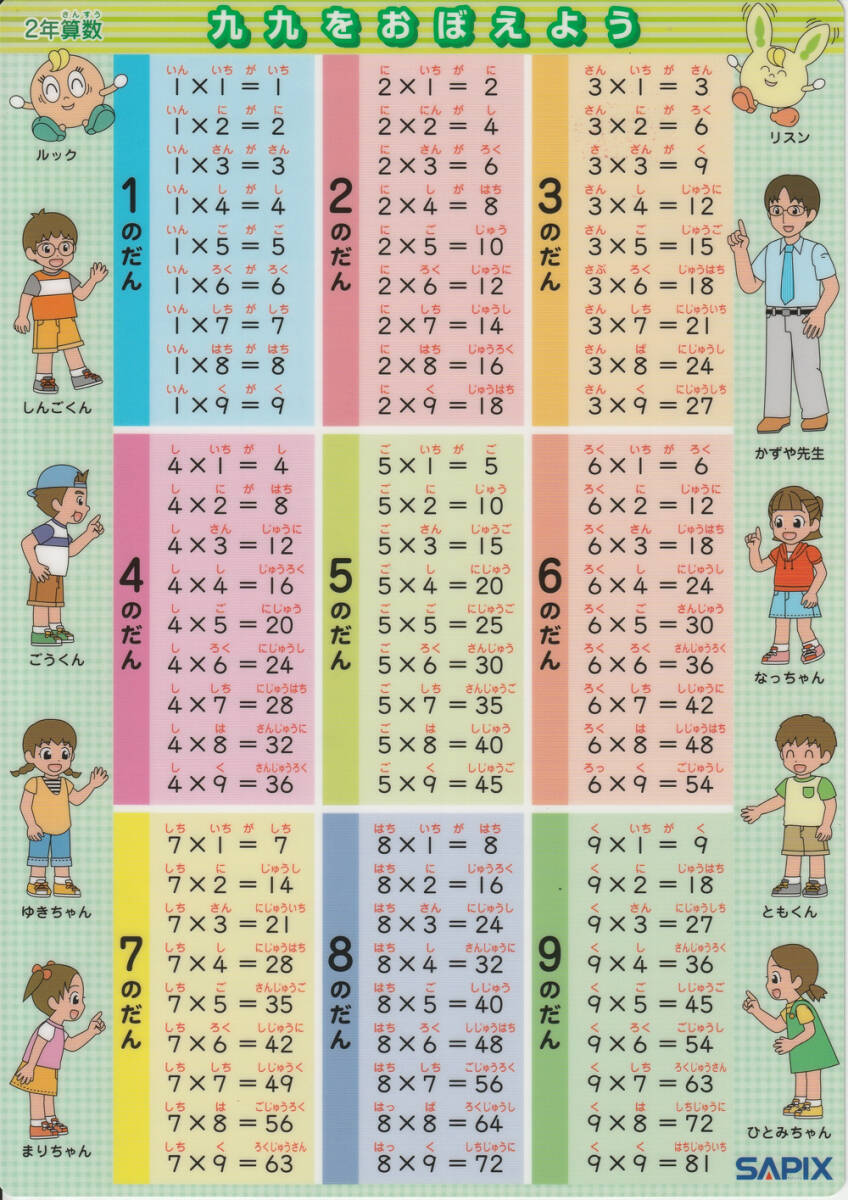 - SAPIX(サピックス) 九九をおぼえよう A4サイズ 下敷き(中古品)