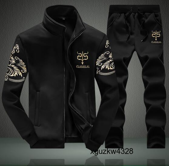 - 人気品 春秋 上下セットアップ スポーツウェア メンズ ゴルフウェア トレーナー スウェット 黒 3色 M~4XL サイズ選択可