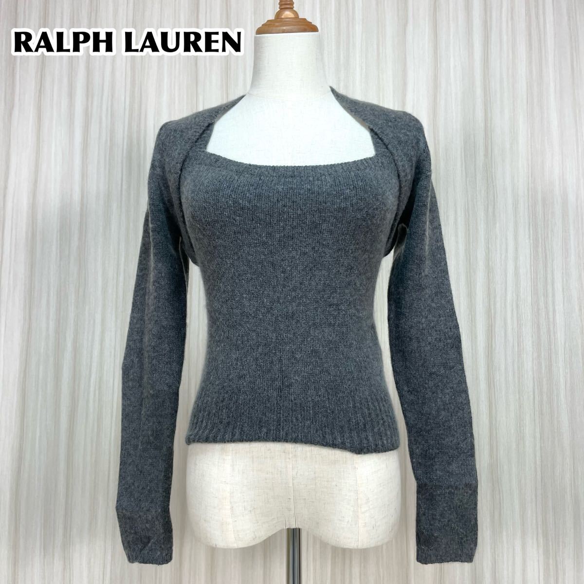 - ☆美品☆クリーニング済み☆高級素材☆美形☆ラルフローレン ボレロ キャミソール アンサンブル 2点セット M カシミヤウール グレー 古着