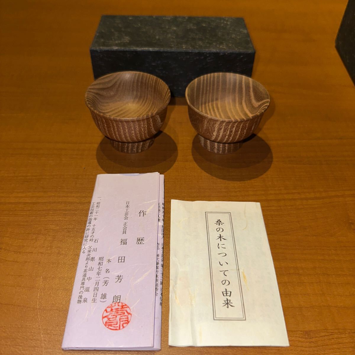 - 高級 桑造 桑の木 お猪口 茶道具 福田芳朗 芳雄 石川県山中温泉 盃