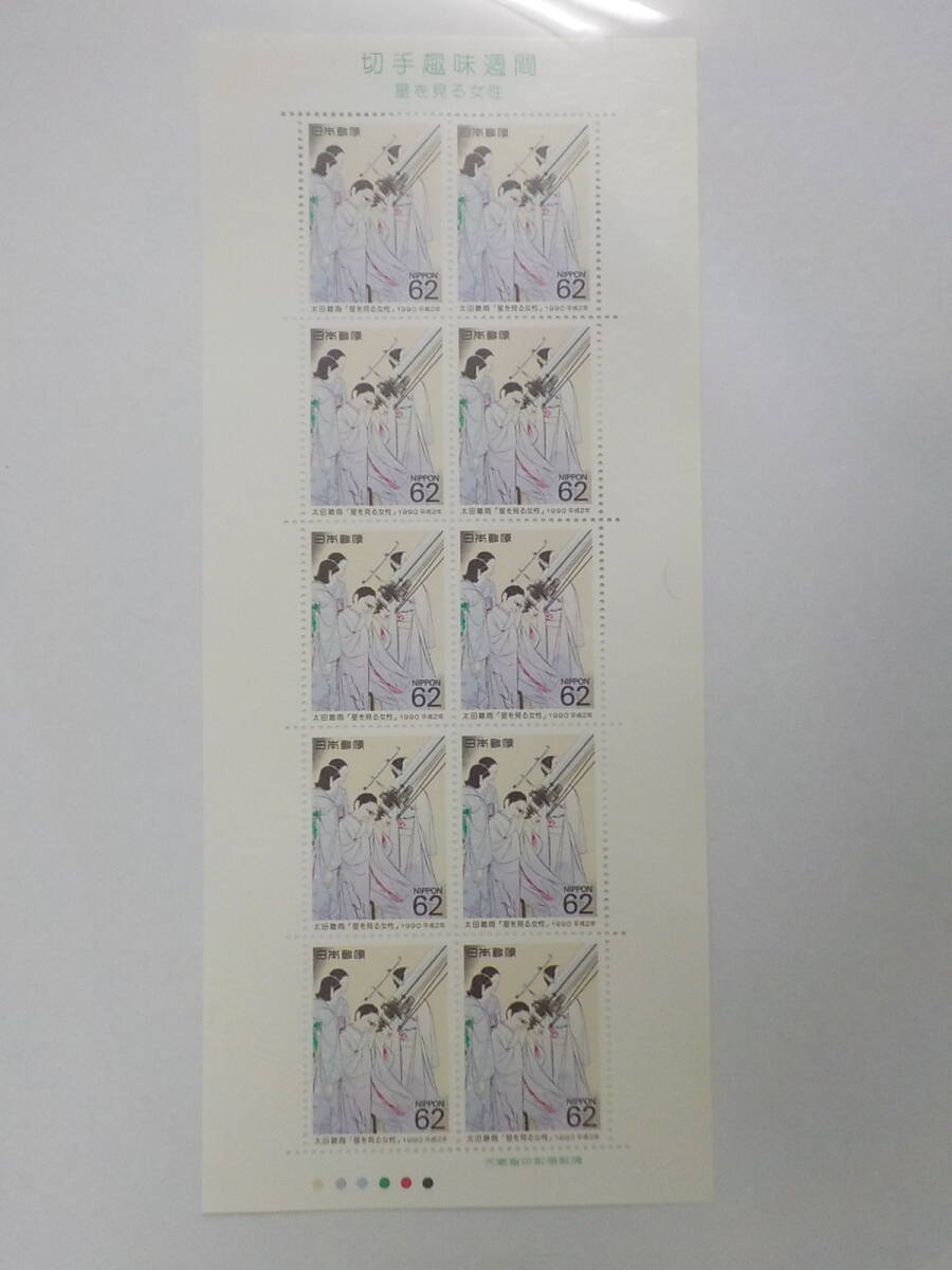- 切手趣味週間 1990年 太田聴雨 星を見る女性 62円切手シート 未使用