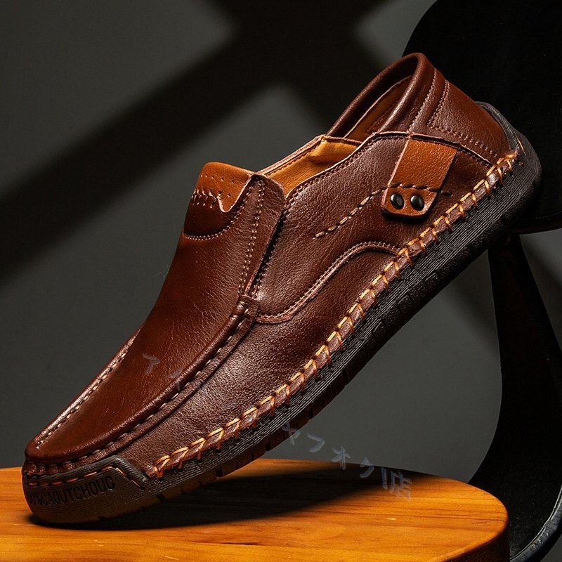 - ローファー 牛革 ドライビングシューズ メンズ シューズ 靴 レザー シンプル 柔軟 男性 素足履き 大人 紳士 ブラウン 24~28cm