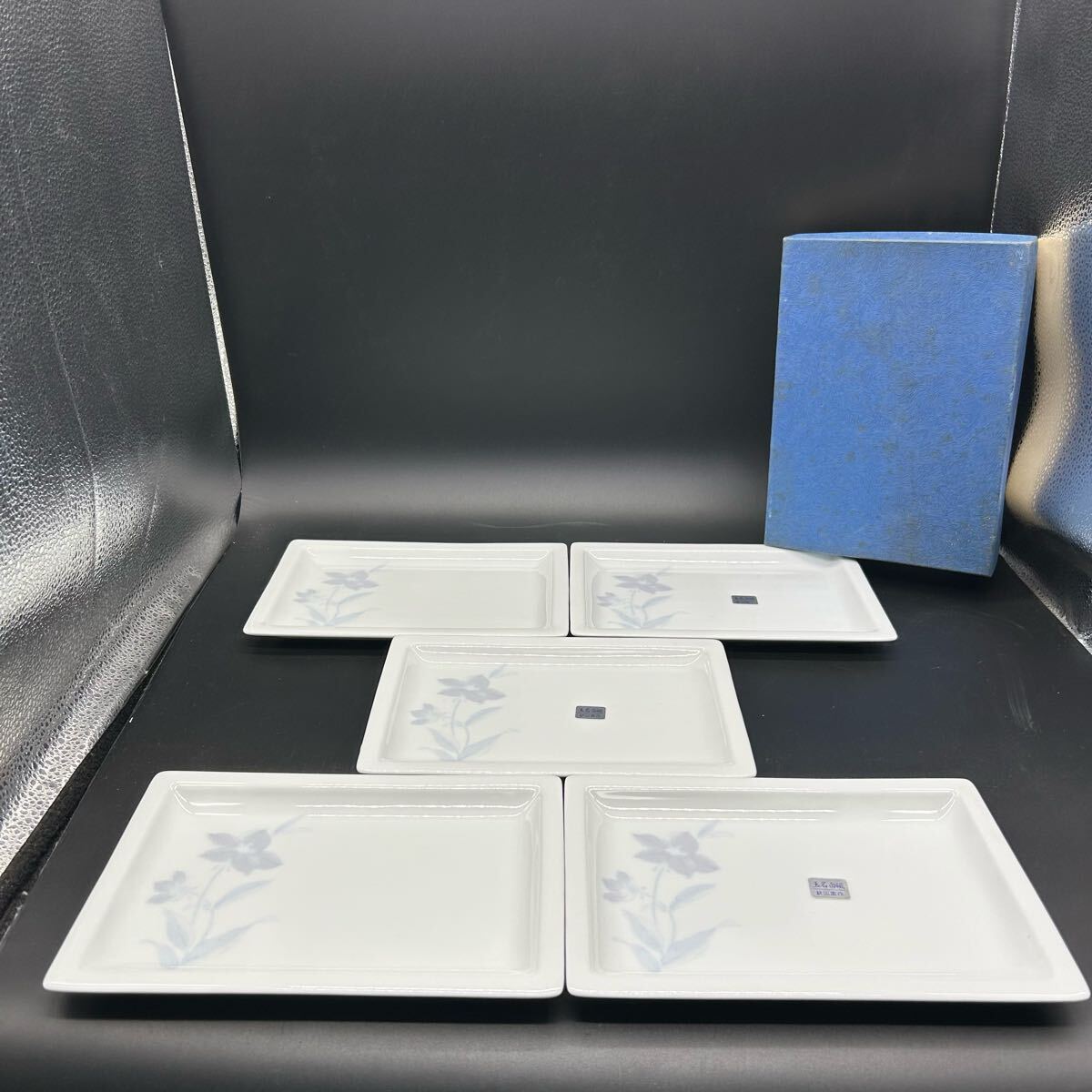 - 焼物皿揃 桔梗 白磁 玉名白磁 角皿 耕山窯作 花柄 和食器 陶器 ヒ18