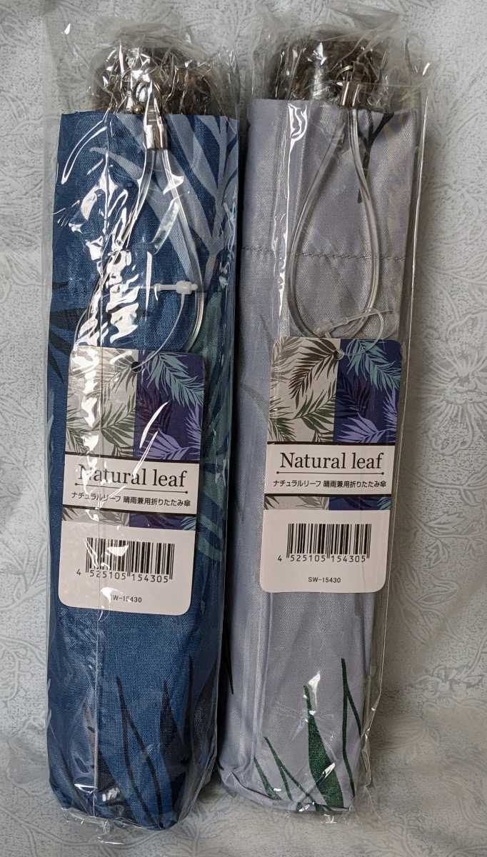 - 即決【送料無料】新品◇晴雨兼用◇折りたたみ傘・ナチュラリーフ・UV遮蔽率98% (シルバー)(ブルー) 未使用/未開封セット