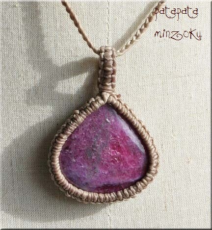 - ルビーインゾイサイト ペンダントトップ マクラメ 石包み フレーム編み ペンダント 天然石 パワーストーン