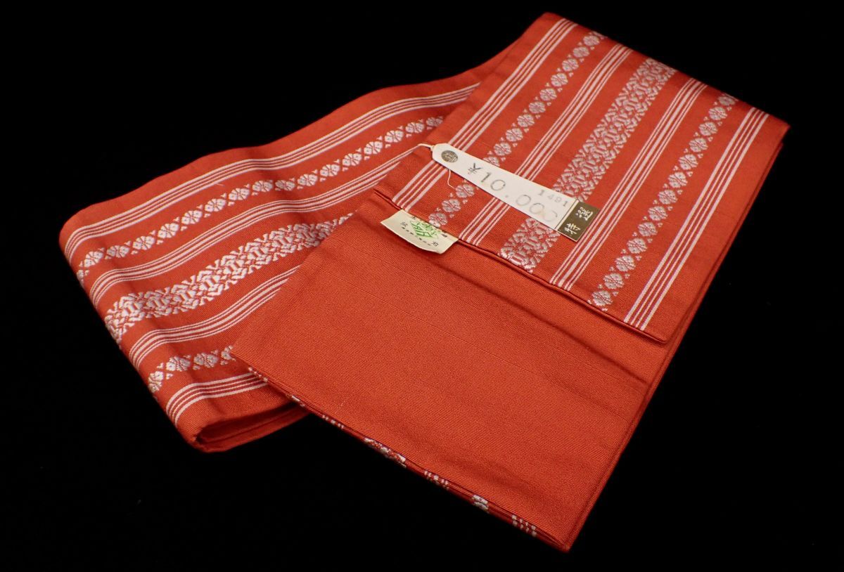 > ▲和装品159 未使用 本場筑前博多織 半幅帯▲正絹/橙色/着物/消費税0円