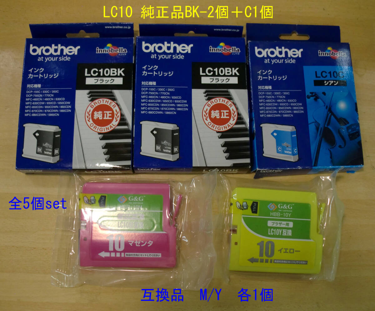 - 送料込 ブラザー純正インク「LC10BK-2個 C-1個 互換Y+M各1箱 計5個set 箱汚れも未使用 経年でJUNK扱品