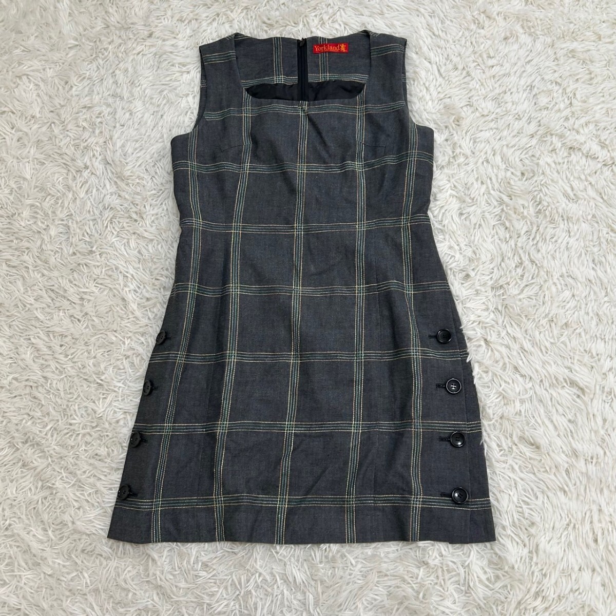 - YORKLAND ヨークランド ワンピース チェック 上品 ドレス グレー ノースリーブ