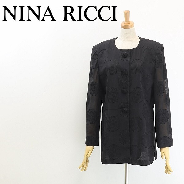> ◆NINA RICCI ニナリッチ SEA ISLAND COTTON 刺繍 コットン ノーカラー ジャケット 黒 ブラック 11AR