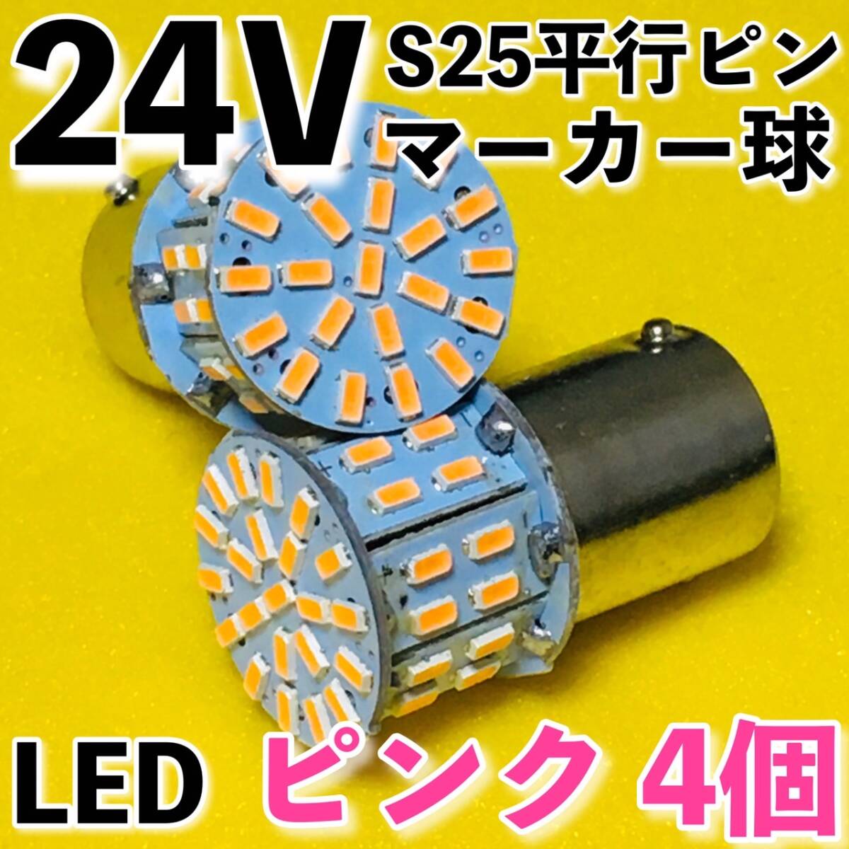 - 24V専用 BA15S LED S25 シングル 平行ピン サイドマーカー バスマーカー ナマズ デコトラ 大型車 トラック 電球 ピンク 4個セット