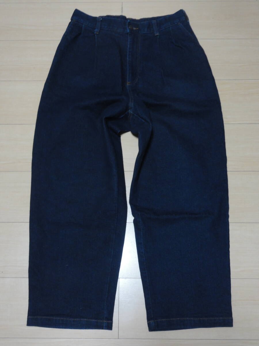 > 格安(M・W78~80cm位)廃版レアモデル・GU(ジーユー)・濃色デニム地・ツータック入りワイド(バレルレッグ系?)デザインジーンズ