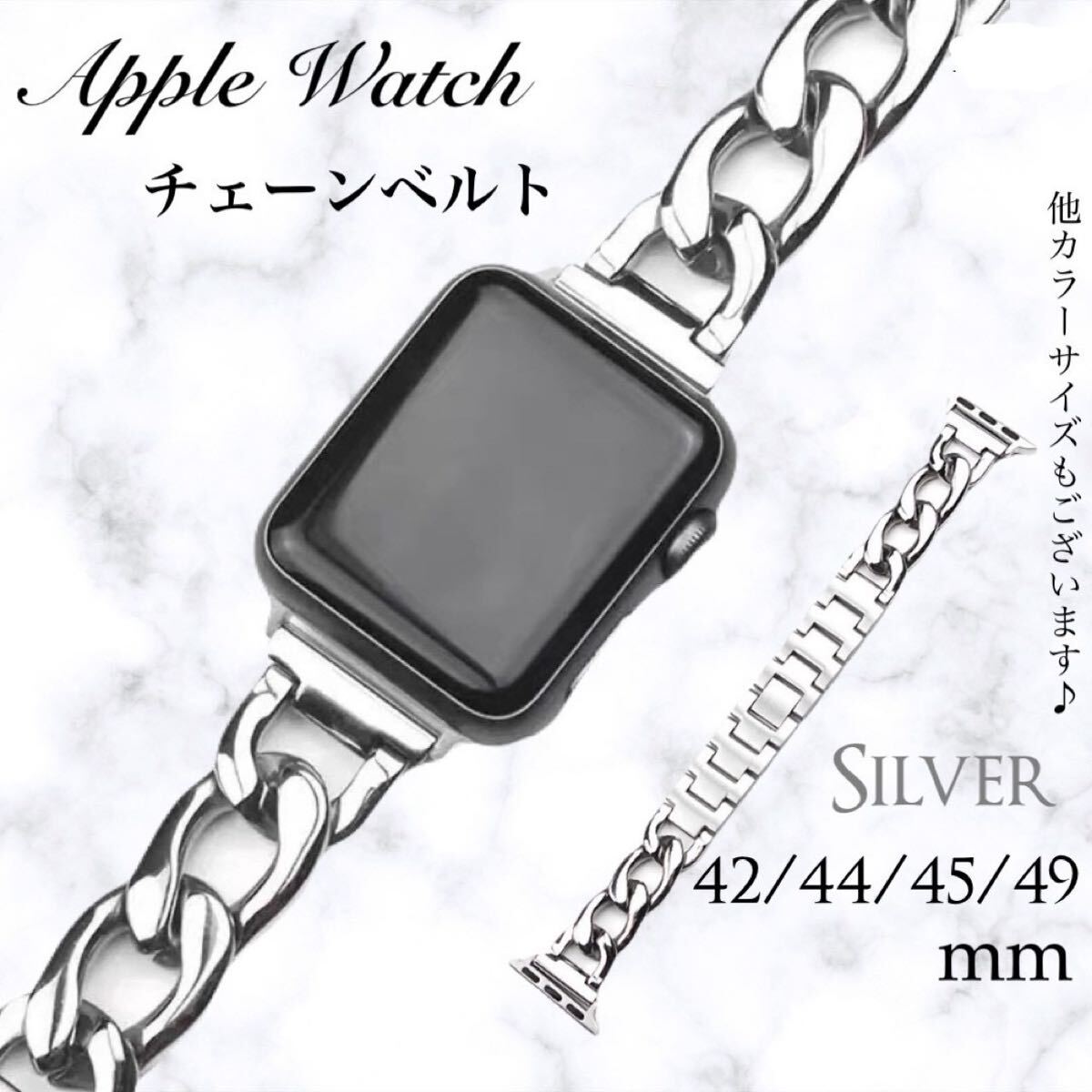 - 新品!Apple watch チェーンベルト シルバー 42/44/45/49mm