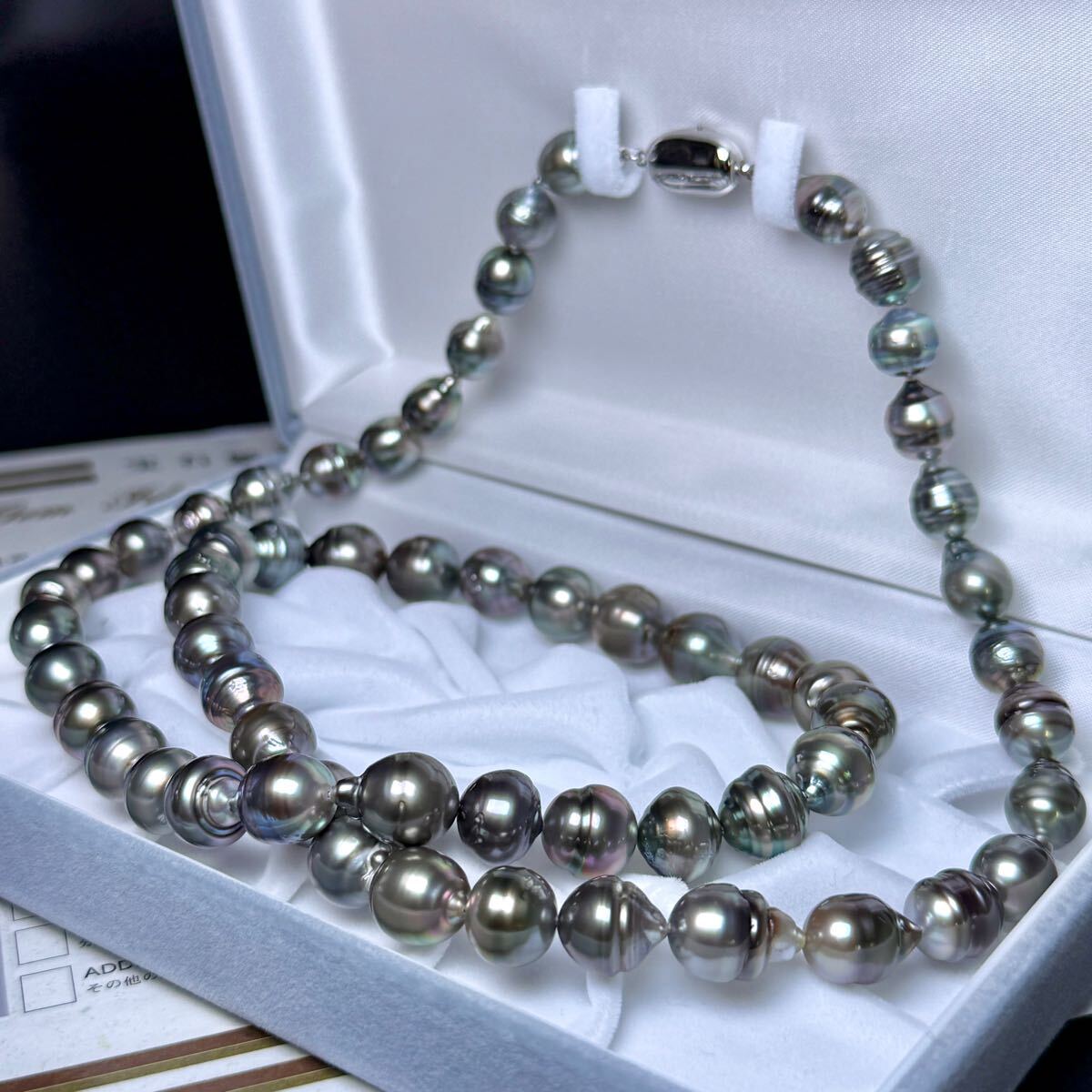 > 照り◎ 鑑別書 黒蝶真珠 ネックレス 9.34〜12.17㎜ 76㎝ 111.5g 南洋パール クロチョウ SILVER刻印 pearl ロング アクセサリー