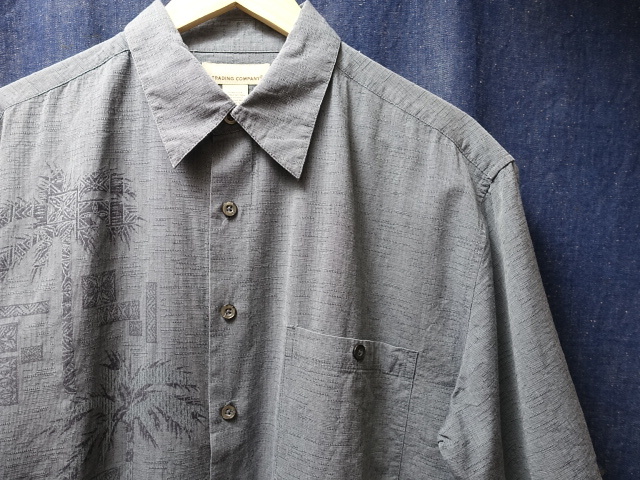 > SALE USA アメリカ 古着 KONA KAI 総織柄 ×ヤシの木プリント 半袖 シルク コットン アロハ シャツ L ビッグ シルエット 78 セール 古着 卸