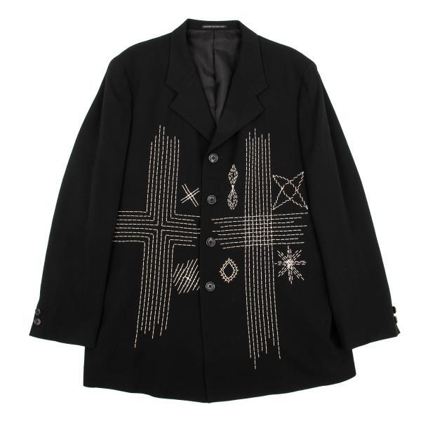 > ヨウジヤマモトプールオムYohji Yamamoto POUR HOMME ウールギャバ刺し子ジャケット 黒M