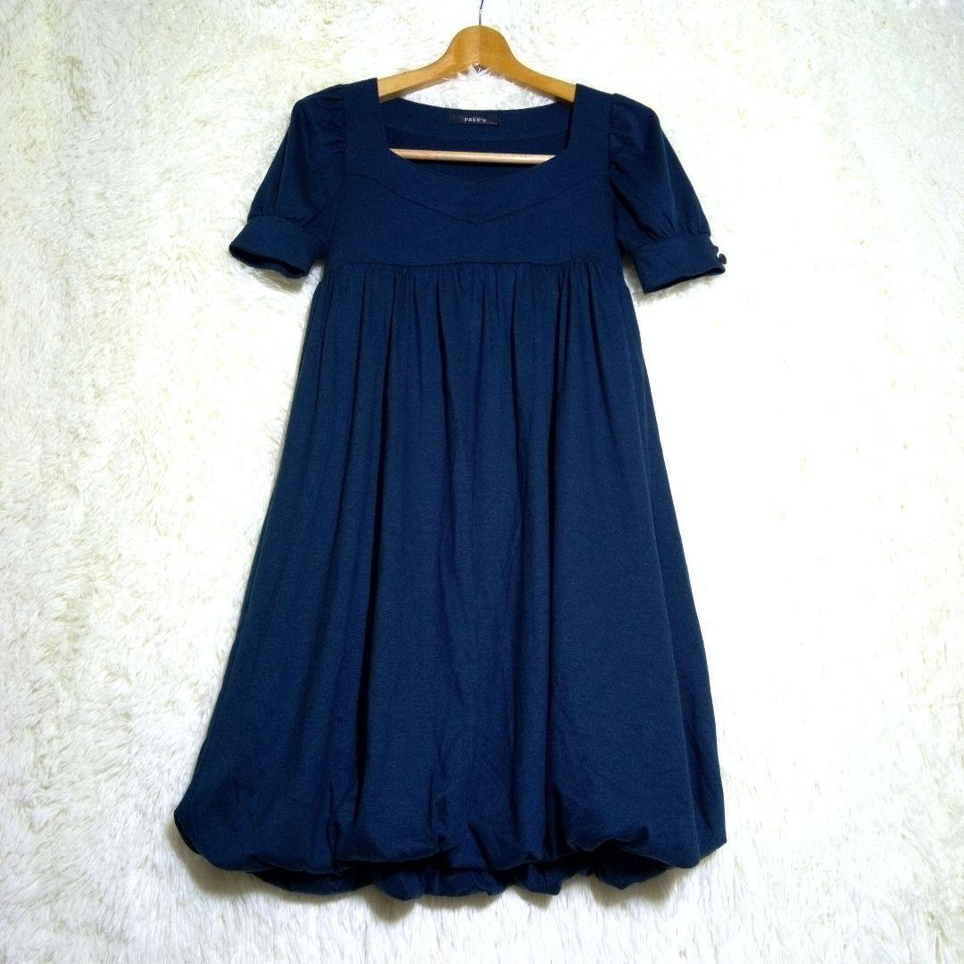 - FREE'S【M】レディース スクエアネック ミニワンピース 半袖 ネイビー