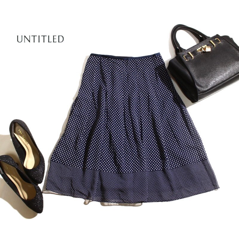 - 美品 アンタイトル UNTITLED 株)ワールド 春 夏 ドット 柄 プリント シフォンスカート フレアスカート 1 ネイビー 紺 ホワイト S 日本製