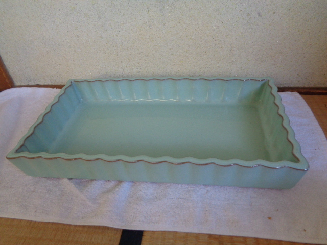 - 陶器 水盤/長方形・角型・薄緑/13N/花器・花活け/活花・生花/和室・華道・床の間/