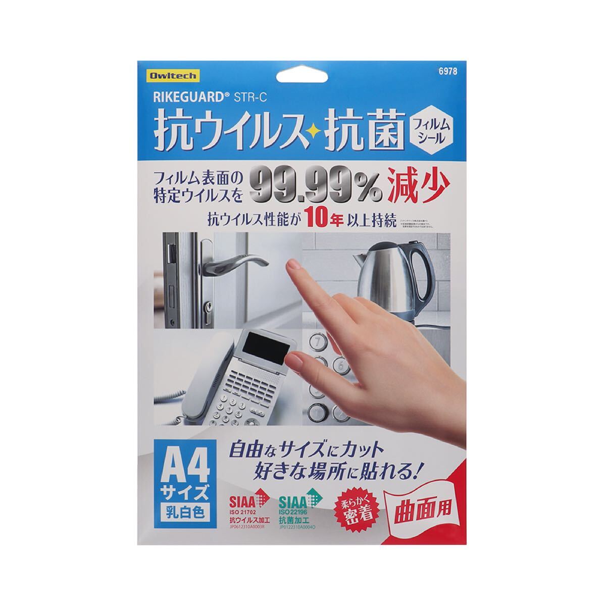 > 抗ウイルス・抗菌 フィルムシール 好きなサイズにカットして好きな場所に貼れる 乳白色 曲面用 SIAA RIKEGUARD OWL-RSTRA4-AN 99.99%除去