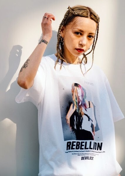 > DEVILOCK アンソロジーヘアREBELION Tシャツ ホワイト パンク パティスミス セックスピストルズ ニルバーナ ロックT