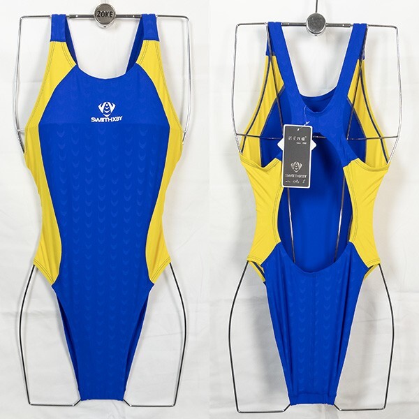 - 0283★H☆BY★うろこ生地競泳水着(L)青x黄