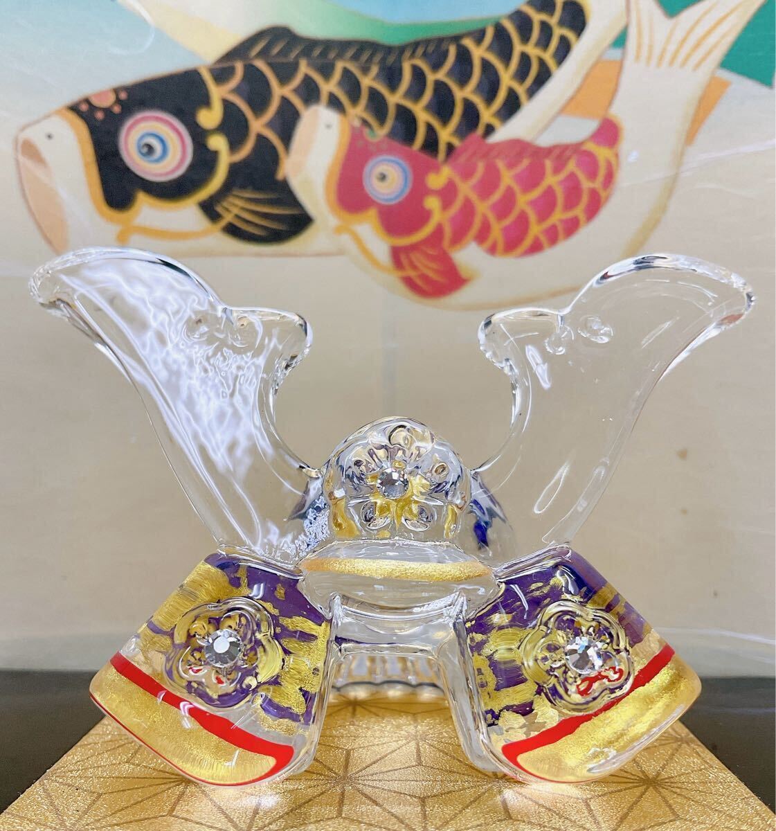 - 新品未使用品 五月飾り【勇硝子兜飾り 紫】ガラス製 子どもの日 端午の節句 初節句 卓上兜 クリスタル 5月玄関飾り 五月人形