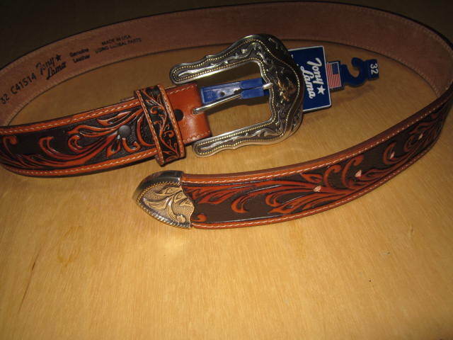 - トニーラマ(TONY LAMA)サイズ32 未使用 新品 ウエスタンベルト WESTERLY RIDE BROWN C41514 made in USA アメリカ製 バイカー